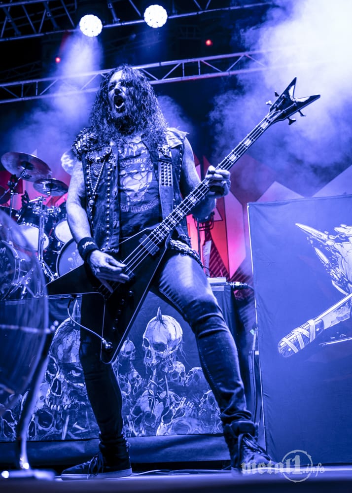 Das ist beides geil! Natürlich bin ich als Bassist Gitarrenfan. Heavy Metal? It’s all about guitars! Die Riffs sind bei Thrash Metal natürlich am wichtigsten, ganz klar, aber geile Soli sind eben auch wichtig. Und jetzt haben wir eben mal eine Platte mit vielen geilen Soli. Nachdem wir jetzt zwei gute Gitarristen haben, die beide solieren können und auch super harmonieren, habe ich die Jungs extrem gepusht, dass wir die Leadgitarren noch etwas herausheben. Du zeigst ja, was du hast und was du kannst. Und in der Beziehung haben wir jetzt einfach einen Schritt nach vorne gemacht. Es ist ja nicht so, dass die ganze Platte durchdudelt: Wir haben Soloparts, die sind kurz und knackig, aber die Soli sind auch einfach ein bisschen geiler als früher, stechen mehr raus und sind deswegen in den Songs besser gefeaturt. In der Beziehung denke ich schon, dass wir einen Punkt gutgemacht haben, und dass für Gitarrenfans einiges abgeht auf der Platte.