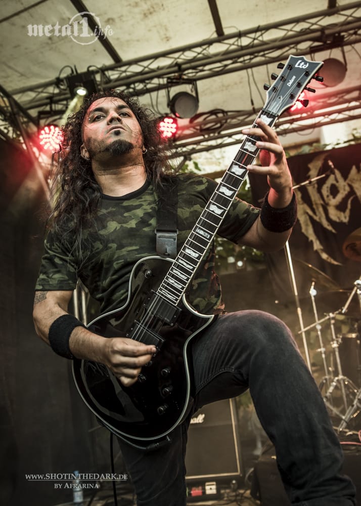 Es gibt viele klassische Modelle von verschiedenen Marken. Von der Rhandy Rhoads Jackson Flying V über Dean Razorback von Dimebag bis hin zu Gary Holts ESP. Als Gitarrenliebhaber habe ich mit verschiedenen Marken und Modellen gelernt. Jeder Spieler hat seine eigenen Vorlieben und Spezifikationen, so dass ich immer noch nicht die perfekte, maßgefertigte Gitarre gefunden habe. Außerdem habe ich nicht genug Zeit auf all die Gitarren verwendet, die ich, um ehrlich zu sein, auch ausprobieren möchte. Aber ja, aus der Sicht eines Fans hatte ich die Ehre, Treys Ibanez-Gitarre auszuprobieren, als wir mit Morbid Angel auf Tournee waren, und wow … Ich kann dir sagen, wenn ein Gitarrist jahrelang sooo viel Gitarre spielt und man das Instrument einfach mal halten darf, dann fühlt man sich fast wie in seiner Haut. Das ist ein besseres Gefühl als alles andere! Denn, geben wir es zu, die meisten Custom-Gitarren werden auch immer mit bestimmten Werkseinstellungen gebaut. Das eigentliche Meisterwerk in die Hand zu nehmen ist also eine ganz neue Welt. Abgesehen davon wünschte ich mir, ich hätte die Gelegenheit gehabt, eine von Dimebags Washburn-Gitarren oder auch seine Dean-Gitarren auszuprobieren, denn dieser Typ hat mein Spiel ernsthaft beeinflusst.