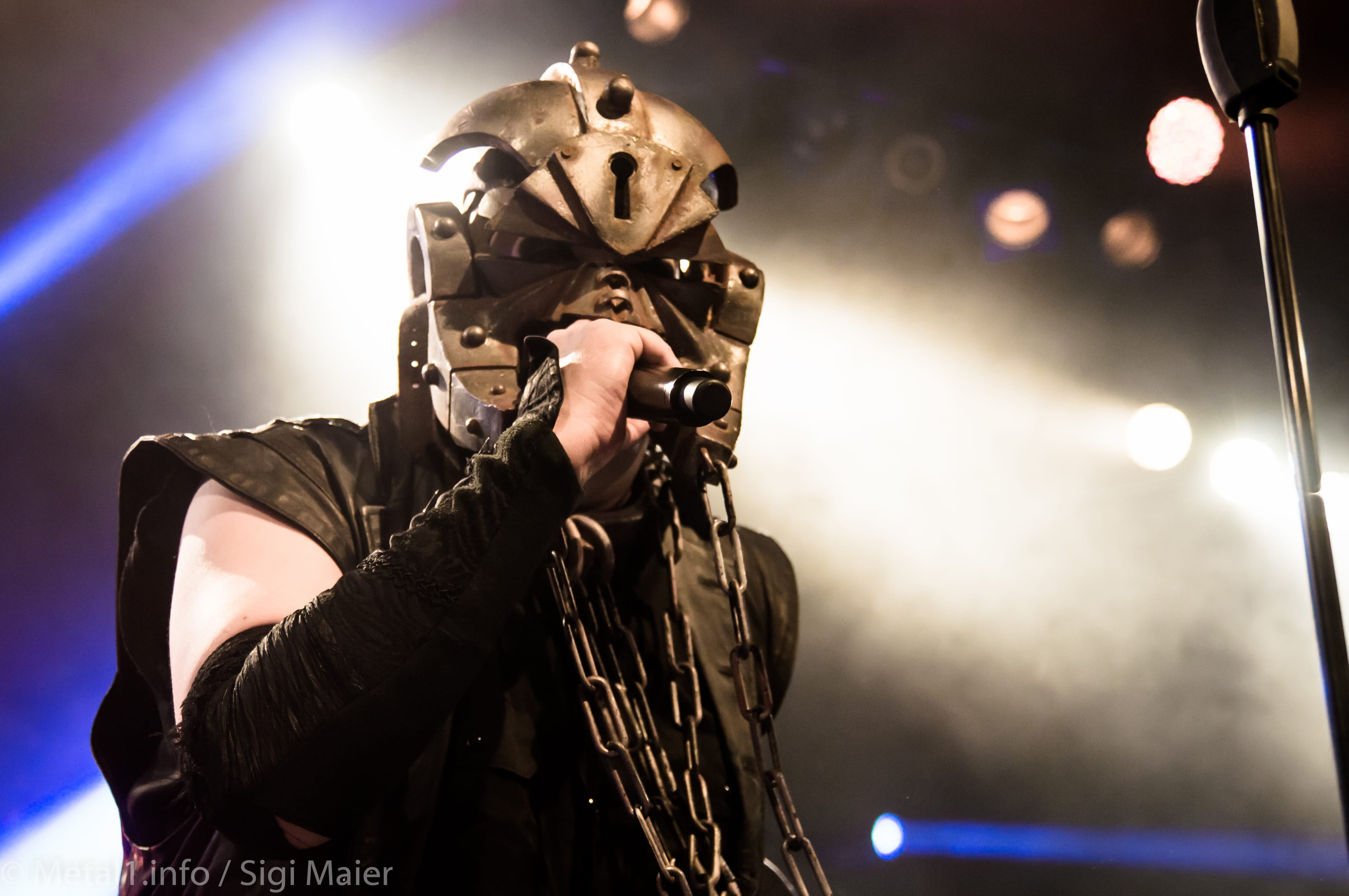 Wie man sein Publikum erfolgreich mit Ungehörtem konfrontiert, beweisen ASP direkt zu Beginn auf der finalen Etappe ihrer aktuellen Tour: Genau wie die Studioproduktion „Maskenhaft“ beginnen die Südwestdeutschen mit dem instrumentalen Intro „Augenaufschlag“ sowie dem Epos „Die Kreatur mit der stählernen Maske“. Passenderweise trägt der Namensgeber für diesen Song ein entsprechendes Metallgerüst auf dem Kopf, welches seine Mimik nur sporadisch erahnen lässt. „Kokon“ und „Wechselbalg“ führen die anwesenden Fans anschließend zurück in bewährte Live-Gefilde jüngeren und älteren Datums. Die schwarzen Seelen Münchens brauchen dennoch ein wenig, um auf Betriebstemperatur zu kommen, im Gegensatz zum schwarzen Schmetterling, der sich dieses Mal nicht erst auf der Bühne einsingen muss.