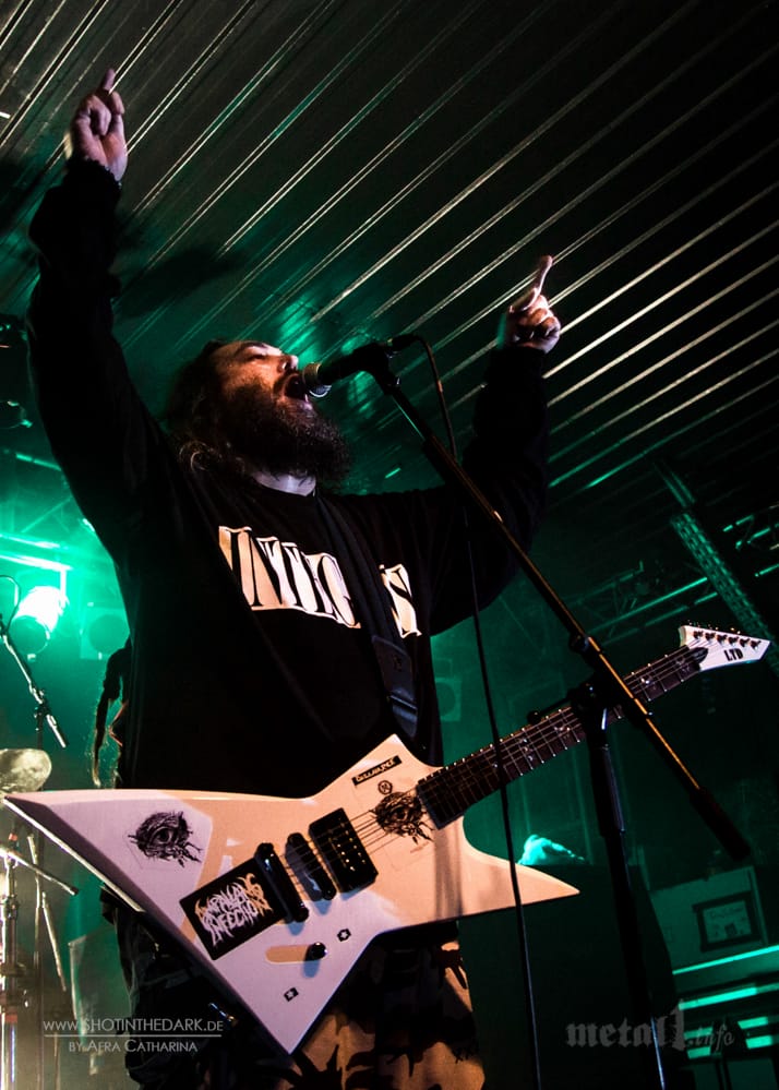 Dass der „Arise“-Kracher „Desperate Cry“ heute nur in Form eines Medleys gemeinsam mit „Beneath The Remains“ und „Troops Of Doom“ angespielt wird, ist zwar schade, bei diesem Hitfeuerwerk aber auch zu verkraften. Schwerer zu verkraften ist die Temperatur in der Halle: Spätestens, als Max Cavalera zur Überraschung seiner Mitstreiter aufgrund der grandiosen Stimmung im Backstage an das als Rausschmeißer geplante „Roots Bloody Roots“ mit „Warlords“ kurzerhand noch einen Song anhängt, bleibt kein T-Shirt mehr trocken.