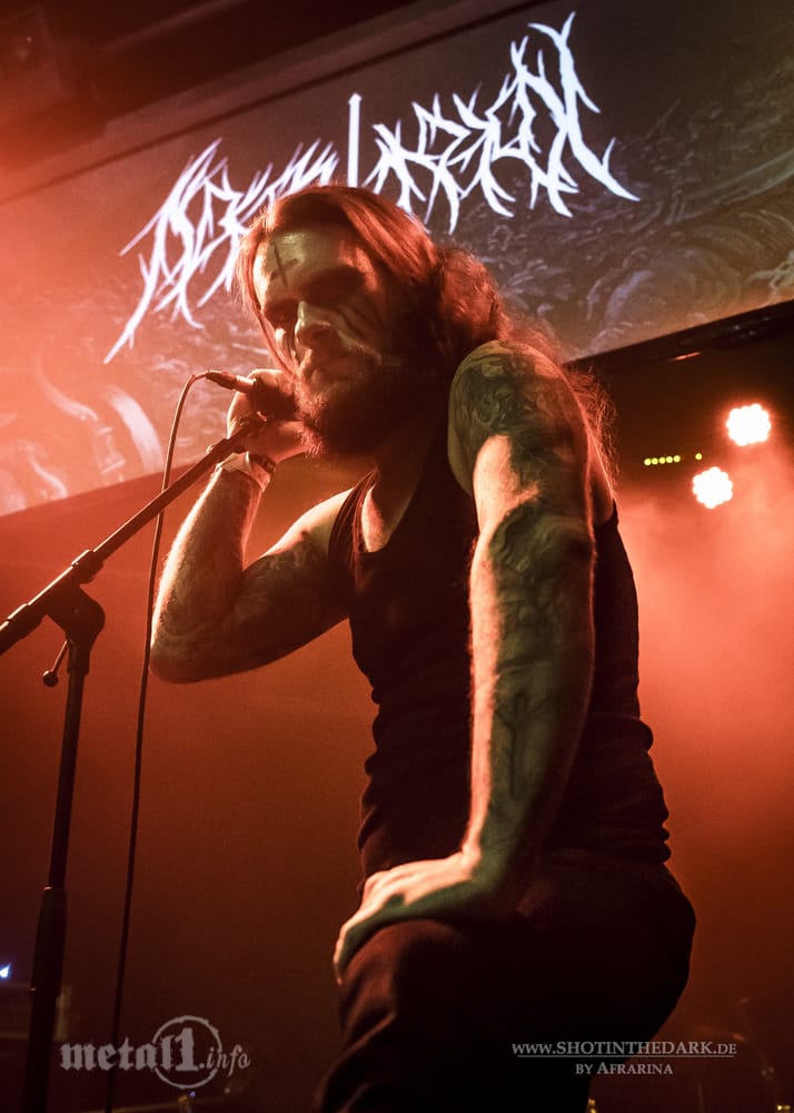 Mit SECRETS OF THE MOON steht im Anschluss erneut eine deutsche Black-Metal-Institution auf dem Programm. Wer auf ein entsprechend hartes Set gehofft hat, wird heute allerdings enttäuscht. Die Formation um Fronter sG spielt an diesem Abend hauptsächlich die eher Richtung Dark und Occult Metal gehenden Stücke ihrer aktuellen Platte „Sun“. Der im Vergleich zum Vorgängermaterial erfrischend andere Anstrich der Musik steht der Band allerdings äußerst gut und so gelingt SECRETS OF THE MOON ein toller, atmosphärischer Auftritt. Einzig der überzogene Einsatz von allerlei Samples (Gesangsspuren, Gitarrenspuren, Percussionspuren) irritiert hin und wieder. Mehr selbst machen oder für live umarrangieren wäre hier besser gewesen. Davon abgesehen zeigen sich SECRETS OF THE MOON im Vergleich zu so manch früherer Performance aber erfreulicherweise sehr sicher an ihren Instrumenten und beweisen, dass sie sich momentan auf einem sehr vielversprechenden Weg befinden. Und zur Versöhnung mit den Oldschool-Fans gibt es zum Abschluss immerhin noch den „Antithesis“-Hit „Lucifer Speaks“.