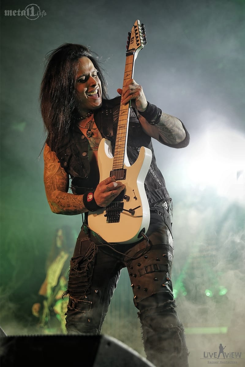 Überpünktlich um 19:45 starten RAVEN ihr einstündiges Set. Die alten Recken um Sänger und Bassist John Gallagher geben Vollgas und lassen erahnen, dass dem Publikum heute ein Schwermetallabend ganz nach seinem Geschmack bevorsteht. Mit spürbarer Routine feuern Raven ihre Songs Richting Publikum. Nach und nach kommt Bewegung in den Saal, der zu diesem Zeitpunkt gut halbvoll ist. RAVEN präsentiert sich als guter Opener für das, was nun kommt.