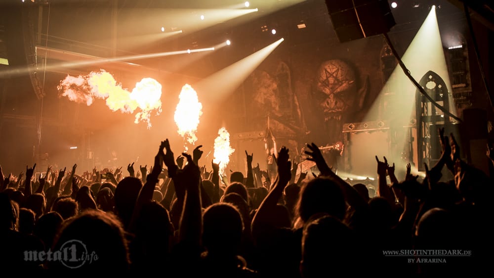 Im bunten Treiben aus Feuerbällen und Konfetti, Luftschlangen und Lightshow, von der Decke baumelnden Puppen und Statisten in Troll-Kostümen wirkt insbesondere der sichtlich gealterte Mille Petrozza wie ein Fremdkörper. Aber auch Lead-Gitarrist Sami Yli-Sirniö lässt heute jede Spritzigkeit vermissen. Das macht Klassiker wie „Enemy Of God“, „Phobia“, „Phantom Antichrist“, „People Of The Lie“ oder „Violent Revolution“ nicht weniger gut – nur weniger wirkungsvoll. Dass Mille nach 75 Minuten „Pleasure To Kill“ eher verschämt denn aggressiv ankündigt und das bislang obligatorische „Flag Of Hate“ wegfällt, ist irgendwie konsequent, wenn man bedenkt, dass KREATOR „Hate“ mittlerweile als „virus of this world“ identifiziert haben. Etwas schade ist es dennoch, stirbt damit doch auch ein Stück deutsche Thrash-Kultur.