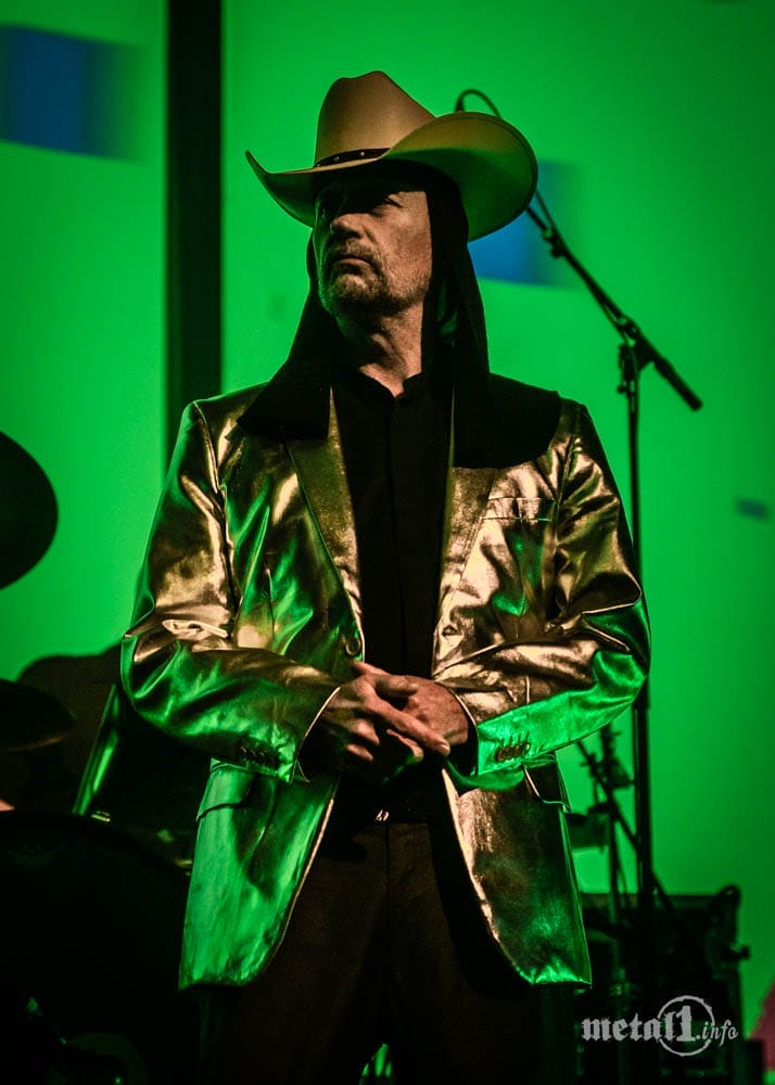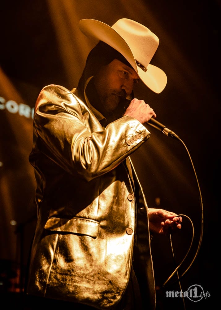 Und so ist auch der erste, dieser EP gewidmete Teil der Show vergleichweise untypisch: Wo sonst bedeutungsschwere Videosequenzen monumentale Soundkulissen untermalen, reisen Milan Fras und Marina Mårtensson als Konzertauftakt zu heiterem Western-Sound als Pixelfiguren auf einer roten Rakete durchs All. Auch der reale Milan gibt mit Cowboyhut und silbernem Jackett eine reichlich skurrile Figur ab – vor dem kleinsten Anflug von Lächerlichkeit bewahrt ihn jedoch schon sein graviätisches Auftreten: Dieser Mann kann nicht nur alles singen, sondern auch alles tragen.