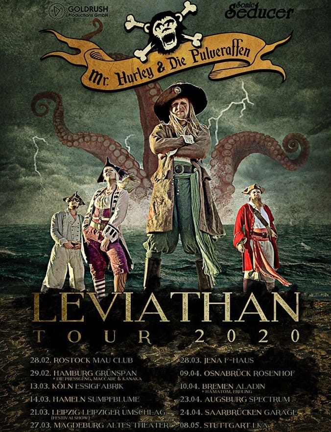 Es heißt wieder „Versteckt den Rum und das Gold!“ in den Klubs und Hallen, denn die Lightning ist unterwegs. An Bord hat sie niemand Geringeren als MR. HURLEY & DIE PULVERAFFEN. Die wohl gefährlichsten und trinkfreudigsten Piraten aus dem karibischen Osnabrück sind auf Tour durch die Lande, um ihr aktuelles Album „Leviathan“ zu promoten. Wir haben für euch den Tour-Auftakt in Rostock besucht und festgestellt, die Pulveraffen haben Unterstützung. Als Support dürfen die Bettler zur See, namentlich DIE HABENICHTSE, schon mal die Trinkfreude erhöhen.