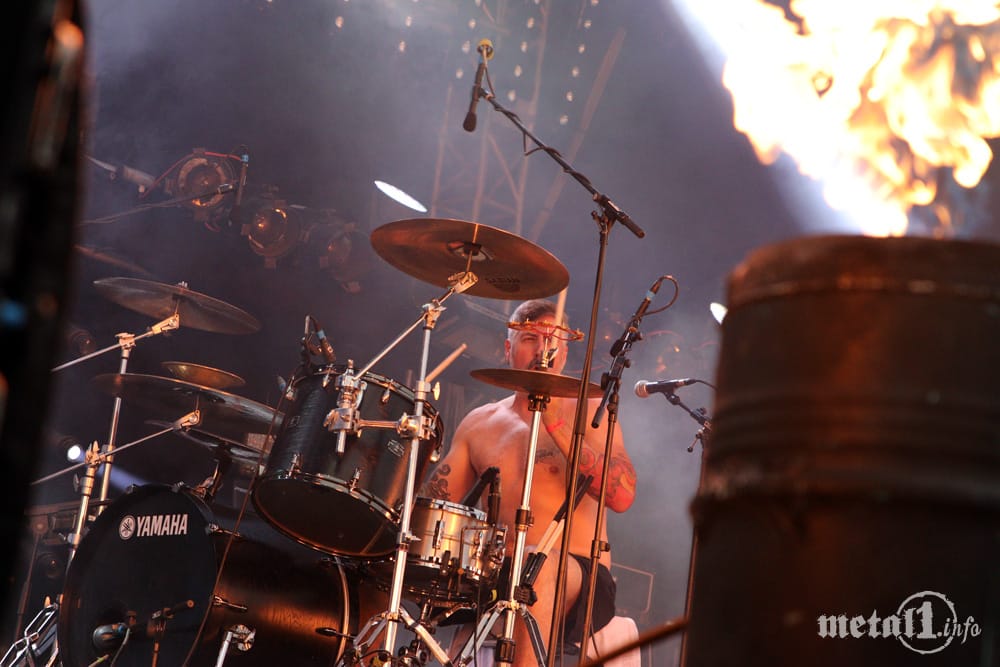 Da kann AZARATH im Anschluss nicht ganz mithalten. Der recht stumpfe Black-Death mit teils recht deutlichen Anleihen an frühere Behemoth und Immolation kommt ohne echte Höhepunkte aus. Hinzu kommt, dass die Musiker ihr Set recht autistisch herunterholzen und daher sichtlich Schwierigkeiten haben, einen Draht zu ihrem Publikum aufzubauen.