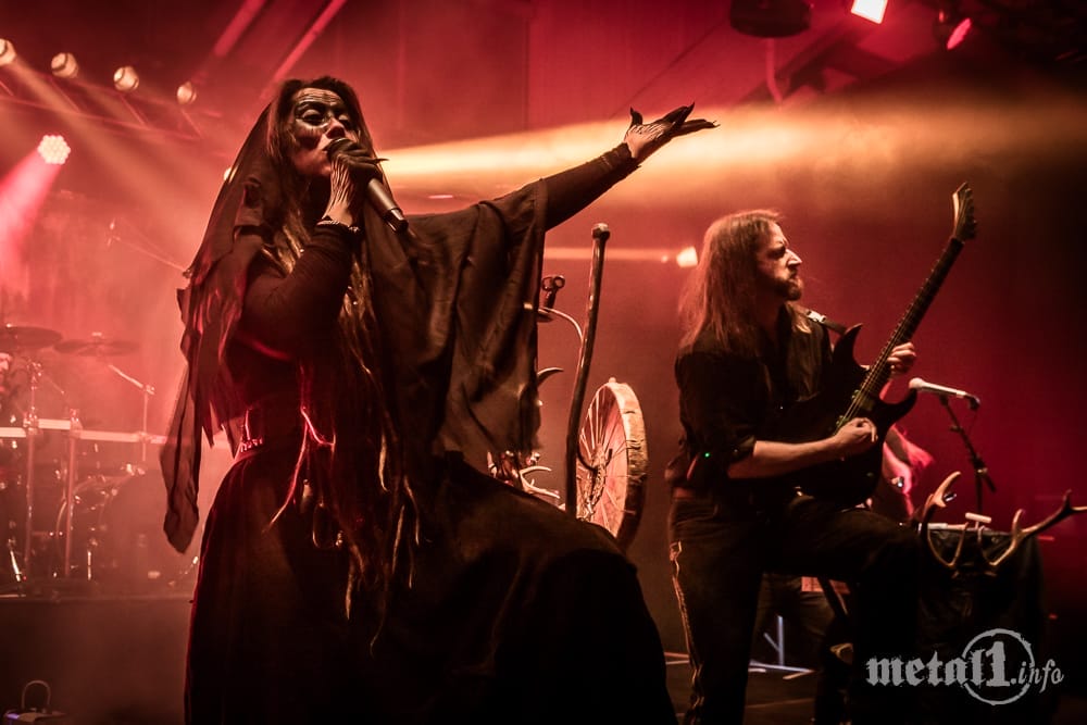 Wer sich nach Finntroll aufmacht, den Abend zu beenden und die Halle zu verlassen, beraubt sich PERCHTA. Die Tiroler Black/Folk-Metal-Band besticht durch ihr Konzept rund um die namensgebende Sagengestalt. Frontfrau Julia-Christin Casdorf steht im Mittelpunkt des Ganzen und verkörpert die PERCHTA furios: Sie zuckt und windet sich, gibt die Dämonische, während sie vom Kreischen und Keifen („Gluat“) zum Klargesang und sanftem Hauchen („Åtem“) wechselt – all das schaurig schön untermalt von der feinen Arbeit am Hackbrett durch Christian Höll (Vinsta) und einem dichten Klangteppich. PERCHTA nehmen die Zuschauer zum Ende des Abends geradezu gefangen und hinterlassen viele der Anwesenden, die eines der Tageshighlights erlebt haben, staunend und überwältigt. [AB]