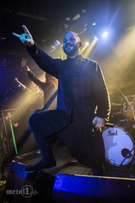 Diesbezüglich hätten RIVERS OF NIHIL ruhig noch ein wenig mehr Mut zum Experimentieren beweisen und Strouses Talente häufiger in Anspruch nehmen dürfen, anstatt sich penibel an die Struktur der Studioversionen der Songs zu halten. Davon abgesehen lassen sich RIVERS OF NIHIL allenfalls (wie bereits ihre Vorbands) eine etwas zu schwächliche Clean-Vocal-Performance zu Schulden kommen. Ansonsten werden die Fans rundum bestens unterhalten – die Band gibt sich energiegeladen und nahbar, der Sound ist schön ausgeglichen und die Zuseher lassen sich erfolgreich zu Moshpits und einer Wall Of Death mobilisieren. Als Zugabe geben RIVERS OF NIHIL schließlich noch „Sand Baptism“ zum besten, ehe sowohl Band als auch Publikum die kleine Halle schweißgebadet, aber frohen Mutes verlassen.