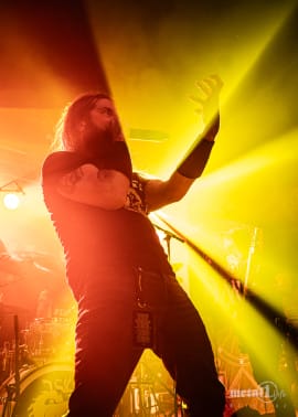 Nach diesem Exkurs in eher ruhigere Gefilde geht es mit RIVERS OF NIHIL zurück in den reißenden Strom des Tech-Death: Das bereitet – auch dank des über den ganzen Abend hinweg vorzüglichen Sounds – schon große Freude, solange RIVERS OF NIHIL „nur“ zu viert auf der Bühne stehen. Dass auf der Tour aber neben der Kern-Band auch Live-Musiker Patrick Corona von Cyborg Octopus mit von der Partie ist, bereichert den Auftritt ungemein: Wie oft im Leben hat man schließlich die Gelegenheit zu einem Circlepit zu den Klängen eines Saxophons? Das Münchner Publikum jedenfalls lässt sich diese Chance nicht entgehen – und so tobt während der Show nahezu durchgehend ein munterer Moshpit. Gespielt werden zunächst neun Songs der letzten drei Alben, dazu die Single „Hellbirds“ – doch trotz des insgesamt nicht unanstrengenden Abendprogramms fordern (und bekommen) die Fans noch eine Zugabe. Nach „Clean“ und damit insgesamt 70 Minuten ist dann aber wirklich alles gesagt.