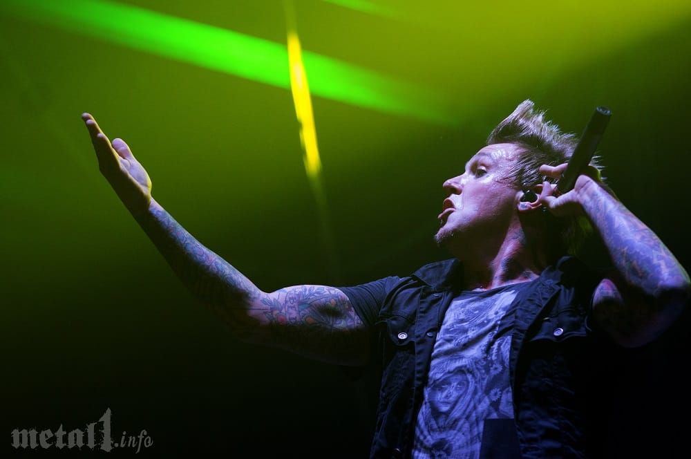 Zu allerlei solidem New Metal und Alternative Rock in Songs wie „Getting Away With Murder“ erreicht das Zenith erstmals Betriebstemperatur: Die vier Jungs toben sich auf der Bühne ordentlich aus und besonders Frontsympath Shaddix versucht zu Songs wie „Hollywood Whore“ und Co. immer wieder, die ersten Fans mit einzubeziehen – mitunter gar, indem er in den Photograben springt und direkt mit den Fans in der ersten Reihe interagiert. Zwar leidet die Show von PAPA ROACH etwas unter den horrenden Licht- sowie suboptimalen Soundverhältnissen, das Publikum lässt sich die Stimmung davon jedoch nicht verderben und feiert den Vierer bedingungslos durch Mithüpfen und -singen ab. Lacher des Abends ist dabei der Moment, als Jacoby einen Konzertbesucher, der an der Musik von PAPA ROACH offensichtlich weniger Gefallen findet und seinen Missmut durch erhobenen Mittelfinger zum Ausdruck bringt, auf die Bühne befördern lässt. Auf die Ankündigung, er werde ihm dafür eine Faust mitgeben, folgt jedoch nur eine herzliche Umarmung des sichtlich verunsicherten Jugendlichen, welcher sich anschließend erst wieder etwas sammeln muss, bevor er sich zum Sprung in die Menge ermuntern lässt. Nach fast einer Stunde Spielzeit sowie dem starken „Dead Cell“ erreicht die Show ihren Höhepunkt schließlich wie erwartet, als das Publikum beim finalen „Last Resort“ nahezu geschlossen zu „Cut my life into pieces …“ in den Gesang mit einstimmt. Über die Tatsache, dass das neueste Material und besonders die angekündigte Single „Where Did The Angels Go?“ über zu wenig Individualität und auch Inspiration verfügen, täuscht das leider nicht hinweg – die spürbare Power der Gitarrenakkorde und die allgemeine Performance bzw. die Spielfreude des Quartetts können diesen Makel zumindest heute jedoch größtenteils ausgleichen.