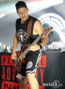 und man kann Zeuge eines kurzen, aber knackigen Heiratsantrages werden: „Ich liebe dich über alles. Sag ja!“ Und sie hat ja gesagt. „Der Scheiss is‘ live“ und „Hassen oder lieben“ führen dazu die Ekstase der aktiven Zuschauer ins fast Unermessliche zu steigern, was an den wilden Pogo-Bewegungen im vorderen Teil zu erkennen ist. „Zickzackkind“ war eigentlich nicht geplant, SWISS & DIE ANDERN spielen den Song für ein Mädchen, deren Mutter gestern gestorben ist und sie hatte um diesen Gefallen gebeten. Eine junge Dame klettert während des Songs auf den Bühnenaufbau und muss von der Security wieder in Sicherheit gebracht werden. „Wir gegen die“ wird mit einer beachtlichen Wall Of Death eingeleitet, den Part von Diggen (Slime), übernimmt DJ Da Wizard. „Antarktis“ und „Grosse Freiheit“ beenden den regulären Part in ruhigerer, aber nicht weniger intensiver Weise.