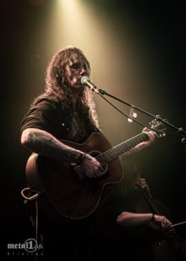 Um kurz nach 21:00 Uhr kommt SYLVAINE auf die Bühne – allein. Bei einer Solotour ist das natürlich nicht weiter überraschend, und doch ringt einem Respekt ab, wie sie nur von etwas Backing-Track unterstützt mit glasklarer Stimme das norwegische Traditional „Dagsens Auga Sloknar Ut“ darbietet. Sodann greift SYLVAINE für ihren Song „Fortapt“ von „Nova“ zur Gitarre – auf der sie später etwa auch den Titeltrack ihres Debüt-Albums „Silent Chamber, Noisy Heart“ von 2014 darbietet. Damit ist die Vielseitigkeit des Sets nur ansatzweise beschrieben: Denn zwischen norwegischen Folk-Nummern und gitarrenbegleitetem Dark-Pop im Stil früher ALCEST lässt SYLVAINE zudem Post-Metal-Einflüsse durchklingen, etwa in einem fast drone-doomigen und rein instrumental gehaltenen Interlude.