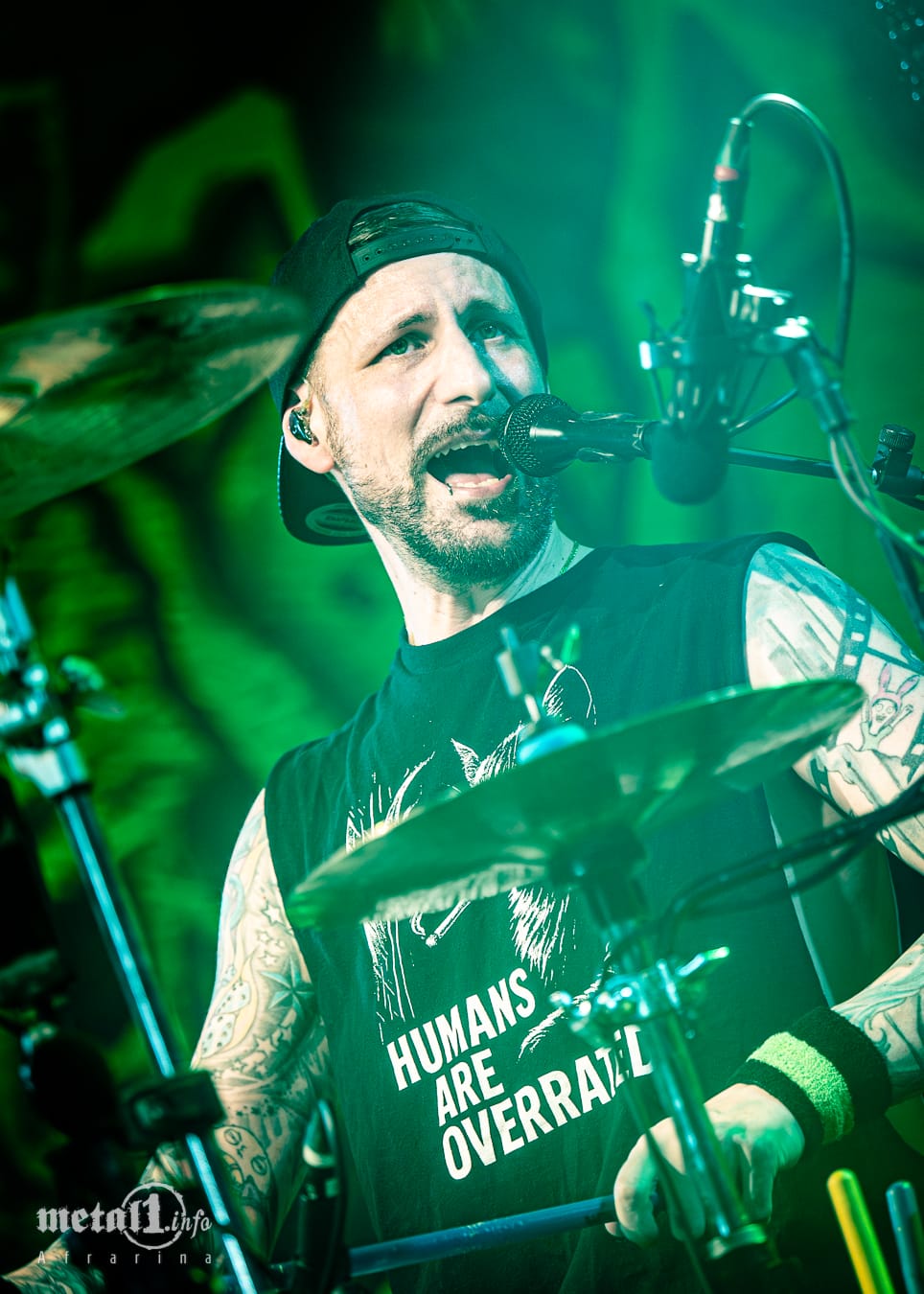 Der Boden jedenfalls ist in beiden Fällen bereitet für den WIZO, wie Axel das gemeinsame Werk von Band und Fans seit einiger Zeit bezeichnet: Nach einer sportlichen Umbaupause von nur 20 Minuten, was im mittlerweile gesteckt vollen Backstage nicht einmal garantiert für Bierbeschaffung und -verklappung reicht, bringt WIZO unter Jubel das Licht. Und zwar ganz wörtlich gemeint, in Form von Laternen, die Ralf und Axel während des Intros auf dem Rücken tragen. Zunächst in deren spärlichem Licht, und sodann von der großen Lightshow ausgeleuchtet, zeigt sich die Bühne diesmal vom Backdrop über die Bühnenaufbauten bis zu den Instrumenten im einheitlich grellgrünen Comic-Look, zu „Rakäthe bringt das Licht“ kommen später im Set noch zwei aufblasbare Atompilze hinzu – „gezündet“ und beseitigt von Crewmitgliedern in Strahlenschutzanzügen.