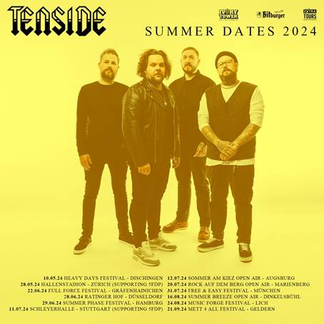 TENSIDE gehen mit Ihrem neuen Album „Come Alive Dying“ (Platz #6 – Deutsche Top 100 Album Charts) auf Sommer Festival Tour. Außerdem wird die Band Five Finger Death Punch auf zwei Arena Konzerten in Zürich (CH) und Stuttgart (DE) im Juni und Juli neben Ice Nine Kills supporten.